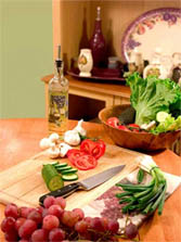 Suppose our chicken fillet Stroganoff in red wine with cherry and orange juice is prepared. And on the right from the stove, the plates are waiting on the kitchen serving table. For this layout all you need is to take a stew-pan with your left arm, make a step to the right and quietly spread the ready dish on the plates.