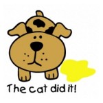 "My vase is broken!" Mother shrieked in horror. "Well," Dad smirked cynically, "I guess the cat did it!"